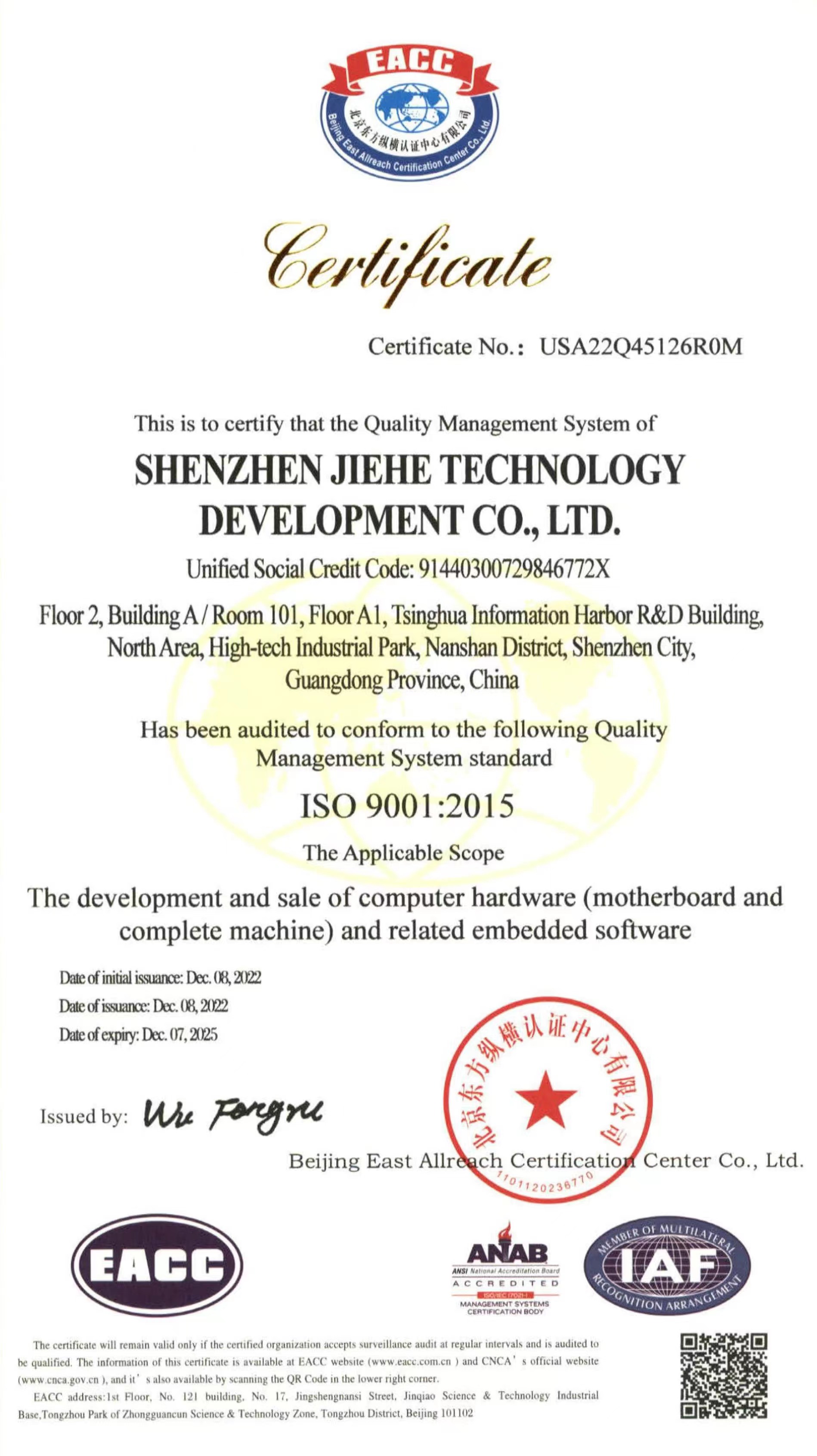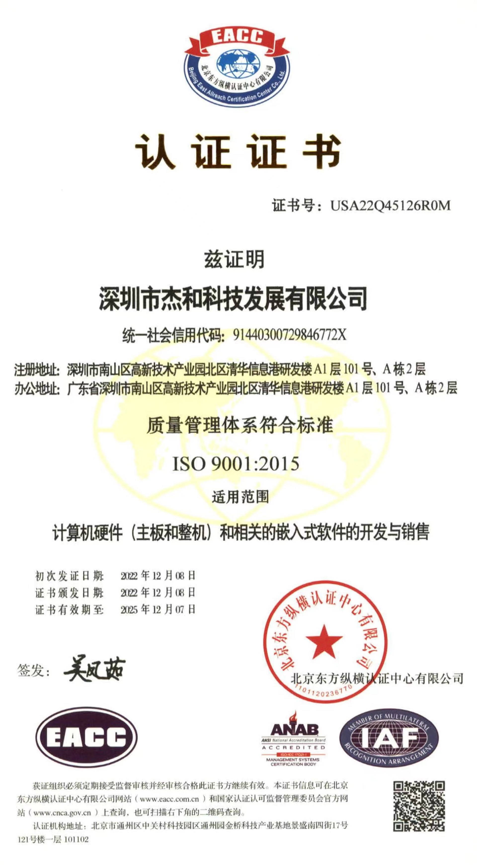 ISO9001质量管理体系认证作为国际标准化组织的管理性质标杆,它的地位可见一斑,其认可彰显了ca88科技的体系管理以及产品的质量。ca88科技在过去几年不断提升设备标准化生产的能力,减少人为质量问题,把ISO9001质量管理体系理念贯穿于产品研发—生产全流程。