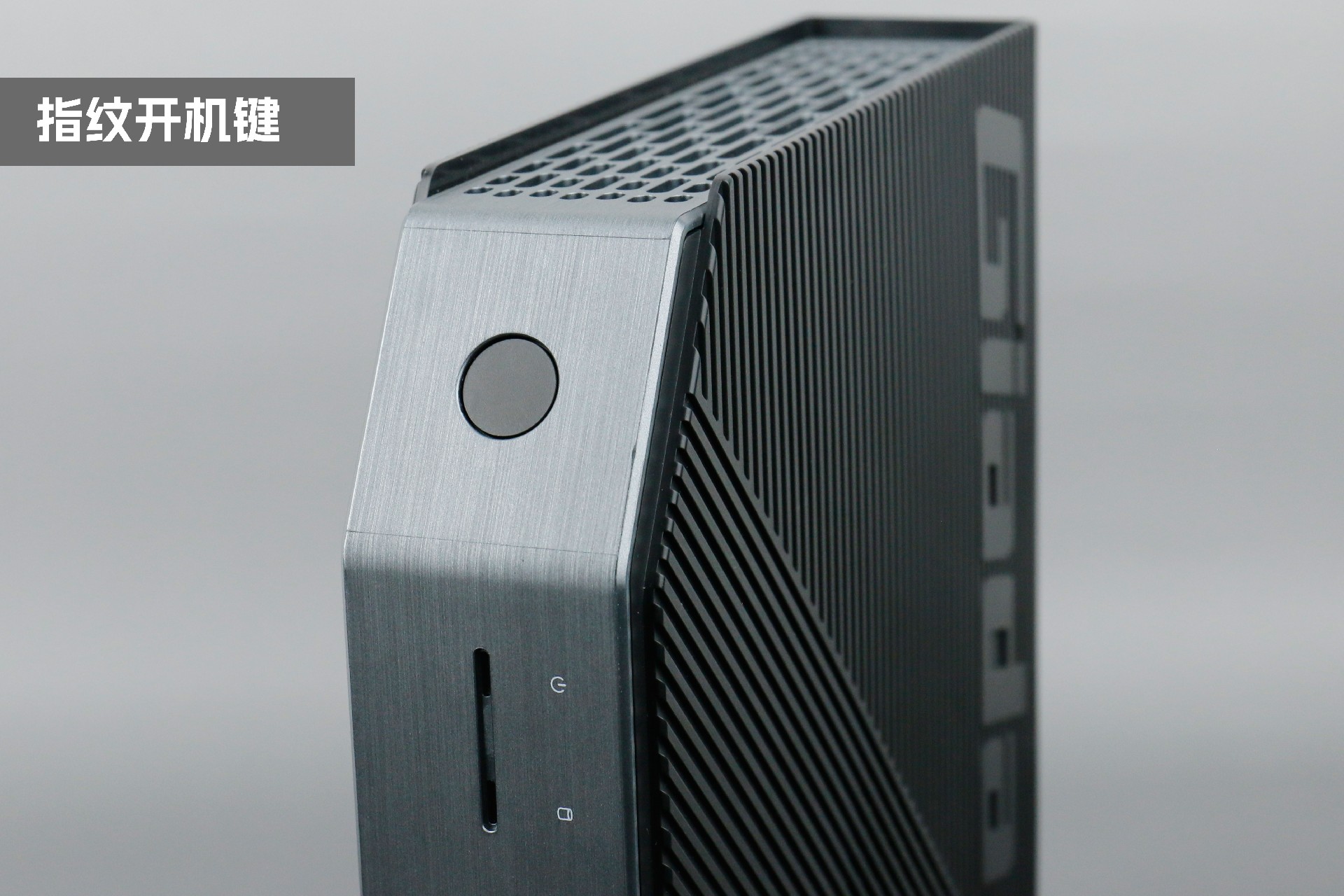 打开ca88桌面云终端Y-BOX P3,你会发现它的结构并不是常见的四方体设计,而是在转角处好似被切割开一个角,切割出来的面积为指纹识别开机键。它的外观为优雅的银灰配色,机身正面厚重感十足,顶部依然沿用黑色哑光栅格并延伸至整机背面,磨砂塑胶材质壳,印刻ca88Giada品牌名;其他三面则为银灰色,两侧是蜂窝式通风口设计。