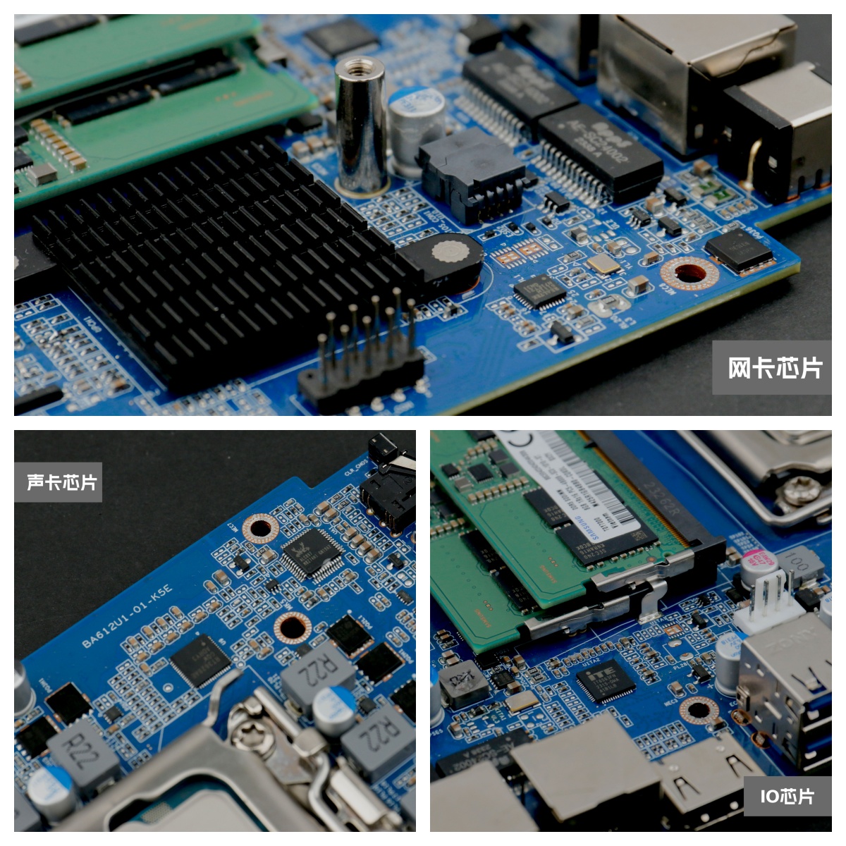 ca88桌面云终端Y-BOX P3主板采用的是6相供电,为H610入门级芯片组,CPU附近都分布了相关的芯片,在千兆网口附近有2个网卡芯片RTL 8111H,在主板背面的音频接口附近可以看到1个经典的“小螃蟹”ALC897 声卡芯片,声卡芯片附近有一个I/0 芯片ITE8613E-LX。