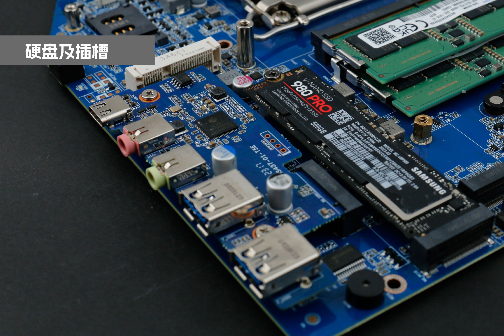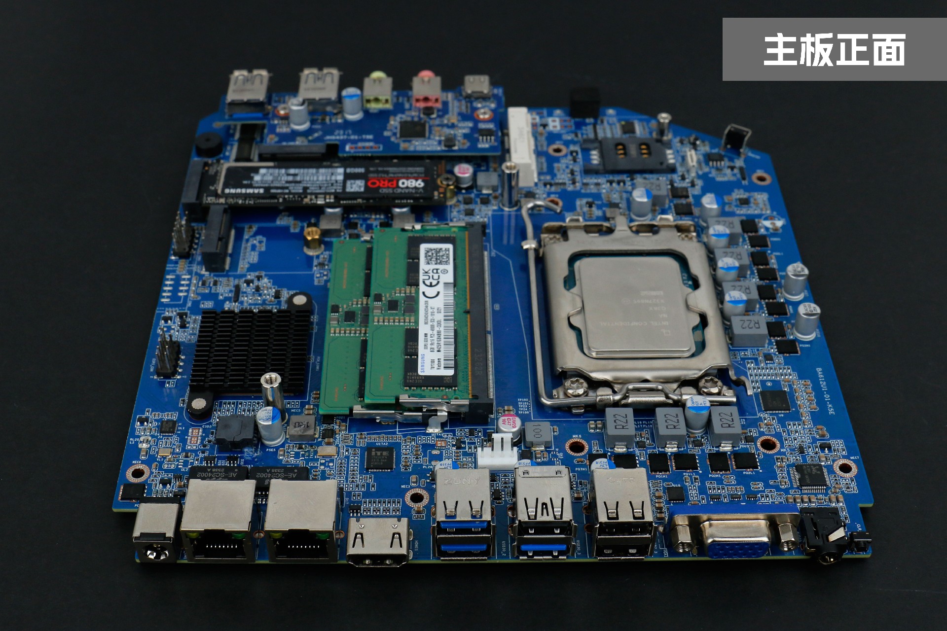 ca88桌面云终端Y-BOX P3主板中部是内存插槽,采用双通道笔记本内存槽设计,最大支持容量可达64GB,最高支持DDR5-5600MHz频率,比 DDR4 至高标准数据速度 3200MT/S多传输 1.75 倍,横插的形式可以减少主板的占用体积,使整体机身更紧凑,内存顶部的风扇起到高效散热的作用。