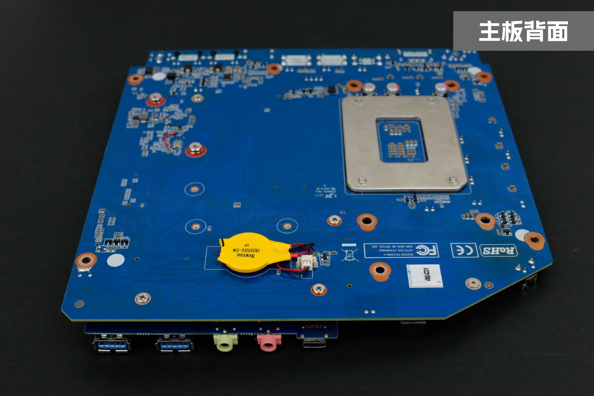 同时,高性能整机带来的散热问题,P3也从多处解决,采用被动散热与主动散热,主板处理器顶部安装一体式铝板,提高散热强度;主板中部安装强劲的涡轮风扇用于散热,风吹到的区域有CPU插槽区域、芯片组区域、内存插槽及硬盘区;最后是主板在电阻上贴的导热硅胶,通过导热硅胶可以提供良好的热传导性和柔韧性,以适应不同形状的散热需求。