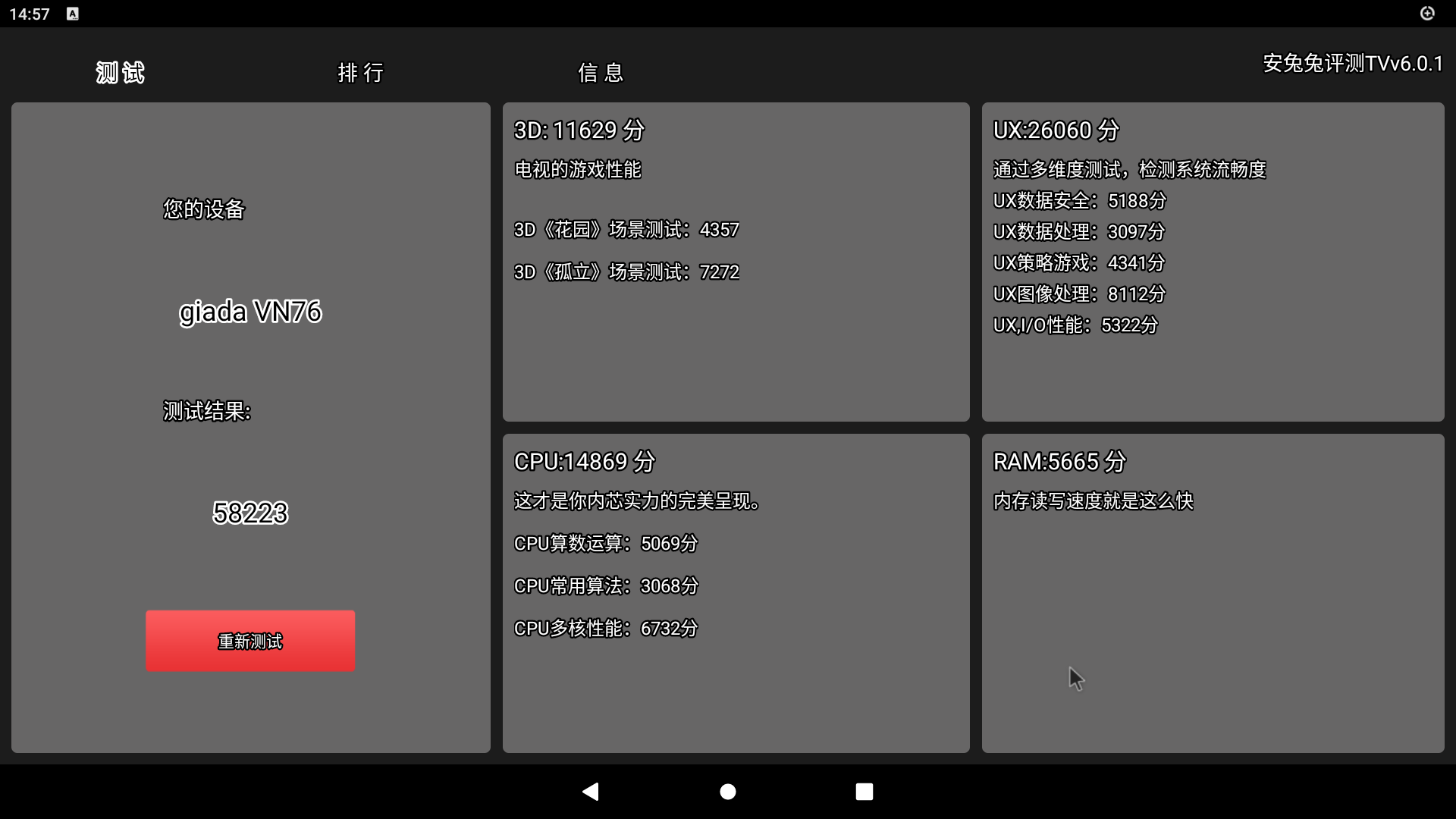 对于云终端来说,使用性能也至为重要,在性能测试中,ca88在测试软件:Antutu 6.01、3DMark、PCMark、NenaMark进行跑分测试,测试结果表明Y-BOX SA1可应对轻度办公使用。