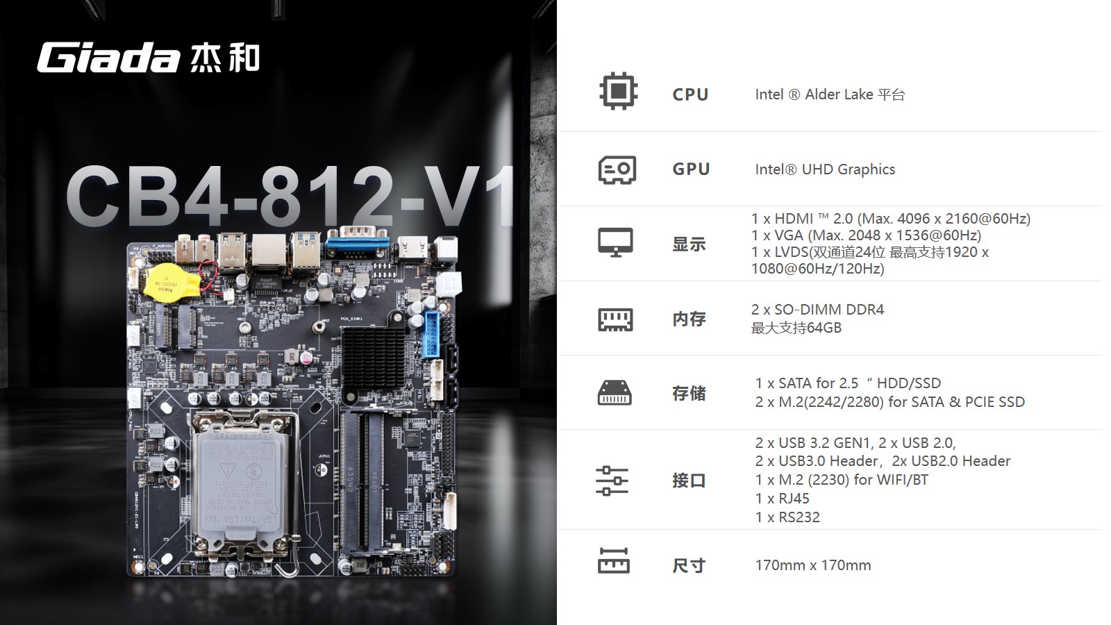 在商用计算机主板领域,一体机主板CB4-411、CB4-812-V1是ca88科技为一体机客户打造的专用主板,ca88科技CB4-411支持Intel® Meteor Lake平台处理器、CB4-812-V1支持Intel® Alder Lake 平台处理器,这类主板具有灵活性和适用性,客户可以根据特定需求进行主板的个性化配置。