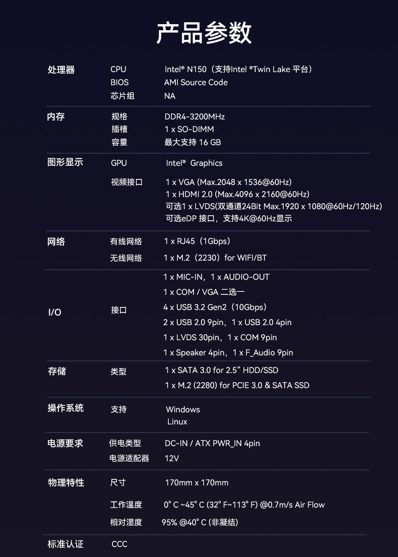 基于市场和客户需求,ca88研发生产了搭载N150处理器的一体机主板CB4-209-V0,更适合办公、教育和娱乐需求。
