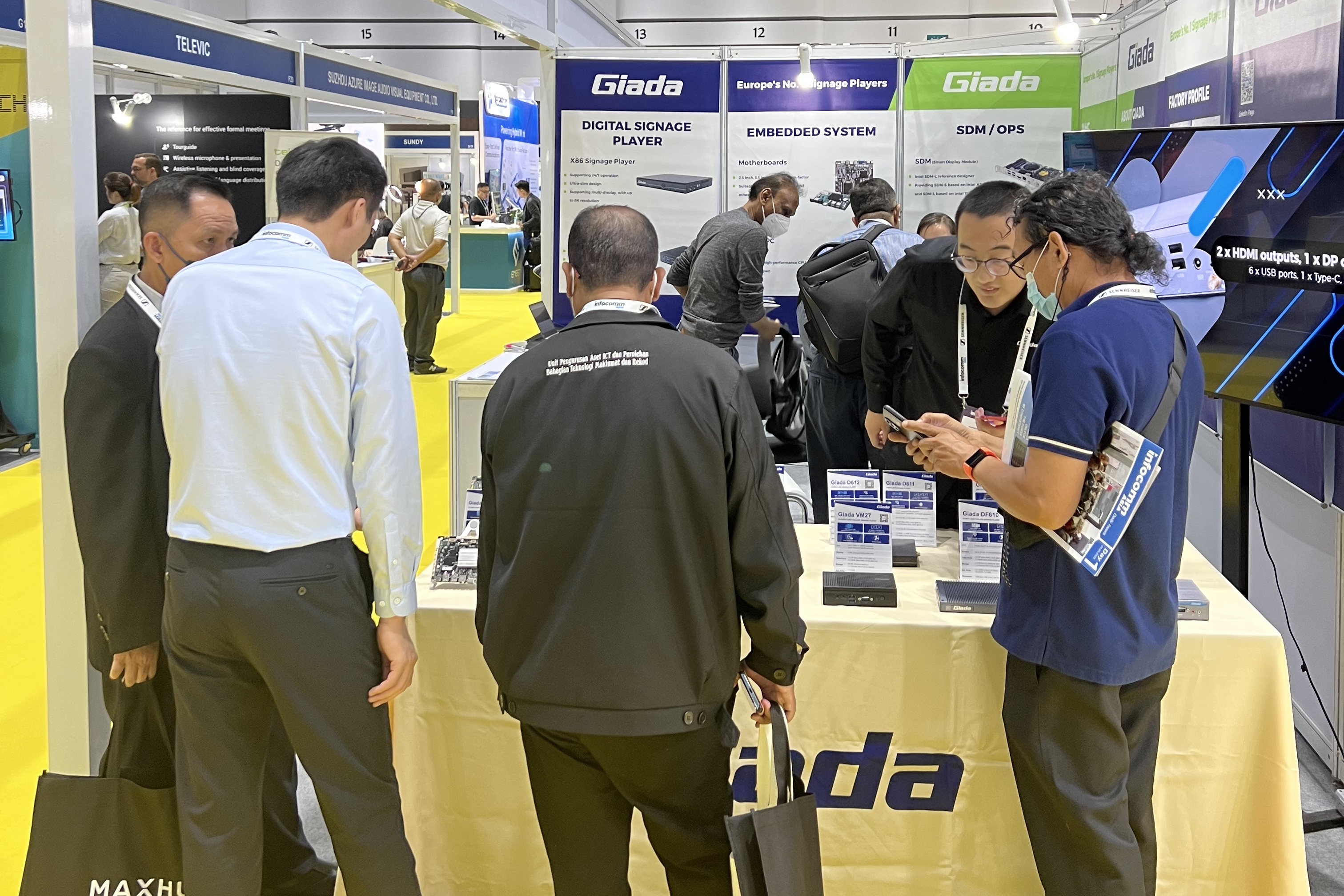 此次InfoCommAsia 2023展会,Giadaca88科技携最新产品及方案亮相。致力于为全球企业客户解决智能化应用需求的ca88,此次展会带来了数字标牌播放器、边缘计算机、OPS/SDM和嵌入式主板等的最新产品,并展示了一系列量身定制的解决方案,以满足泰国市场的具体需求,为亚太地区的数字化转型带来全新势能。展会期间,Giada的展台现场气氛火爆,展位人流络绎不绝!