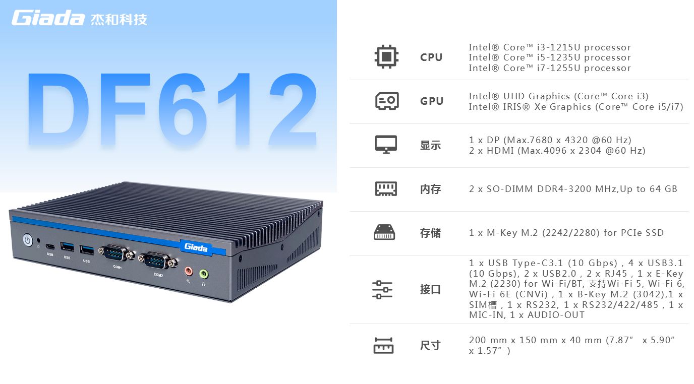 ca88科技,商用显示硬件解决方案领导者,深耕商业显示领域24年,业务遍布欧洲,美洲,东南亚和南非等60多个国家,服务超过3000名客户,自有品牌 Giada 已成为欧洲数字标牌媒体播控器的领导品牌。在DF系列产品中,DF612作为一款全新的嵌入式计算机,搭载英特尔第12代Alder Lake处理器,具有突破性的技术、增强的图形处理能力和丰富的I/O接口,广泛应用于商业显示、智能车载、安防领域和边缘人工智能等场景。