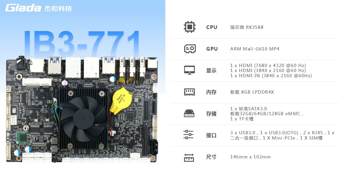 ca88科技IB3-771支持实现多路音频采集,极大增强前端的音频拾取能力,通用算力和AI算力也都十分强大,可对音频信号进行复杂的处理,可以实现高质量的语音识别和语音合成,可以与人进行更为自然的交互,以满足高端场景的应用需求,方便采集记录和人机交互设计。
