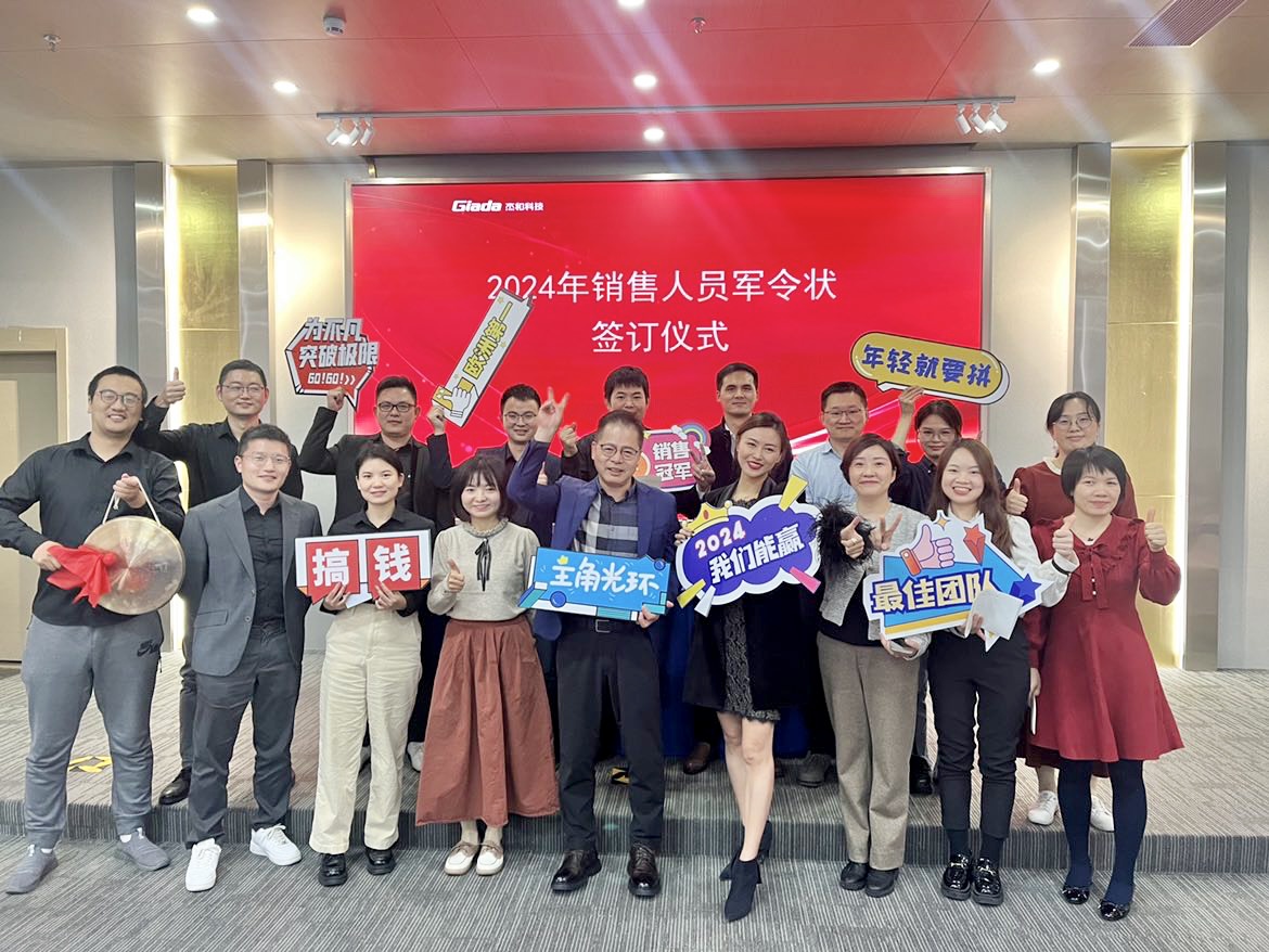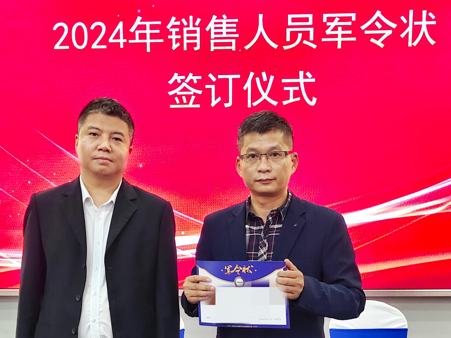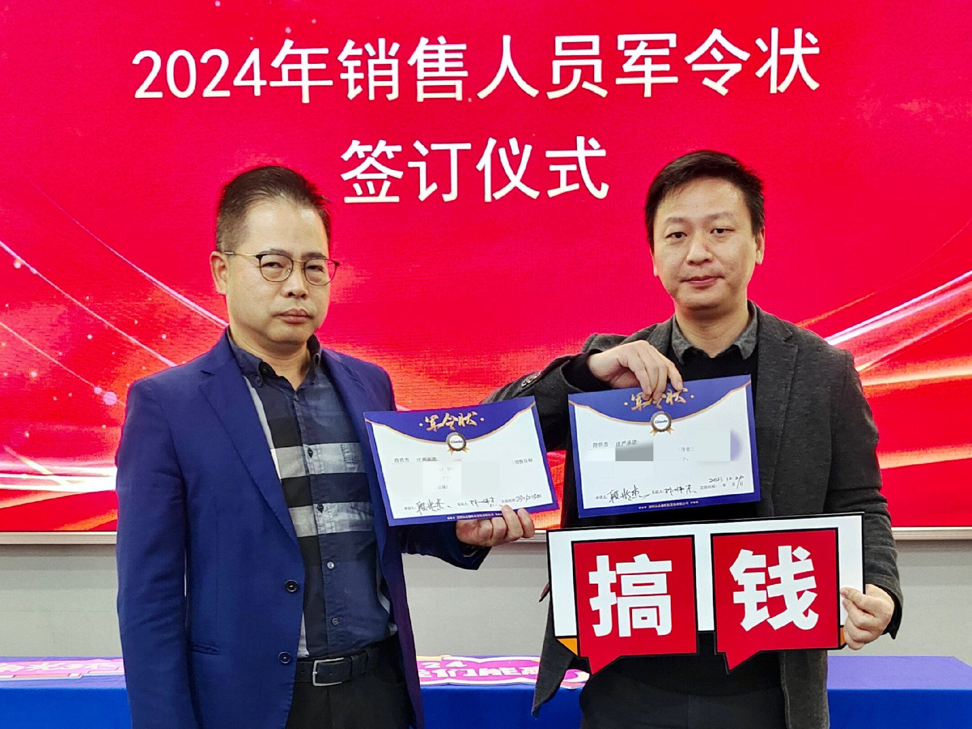 2024公司年度战略目标确立,言出必行,使命必达,国际/国内销售团队为了共同的目标开始军令状签约仪式。一纸军令状,是ca88科技与销售人员的双向承诺,是压力,更是动力。是不破楼兰终不还的决心,更是春风得意马蹄疾,一日看尽长安花的期待。