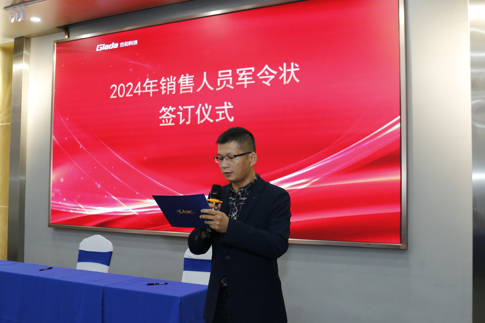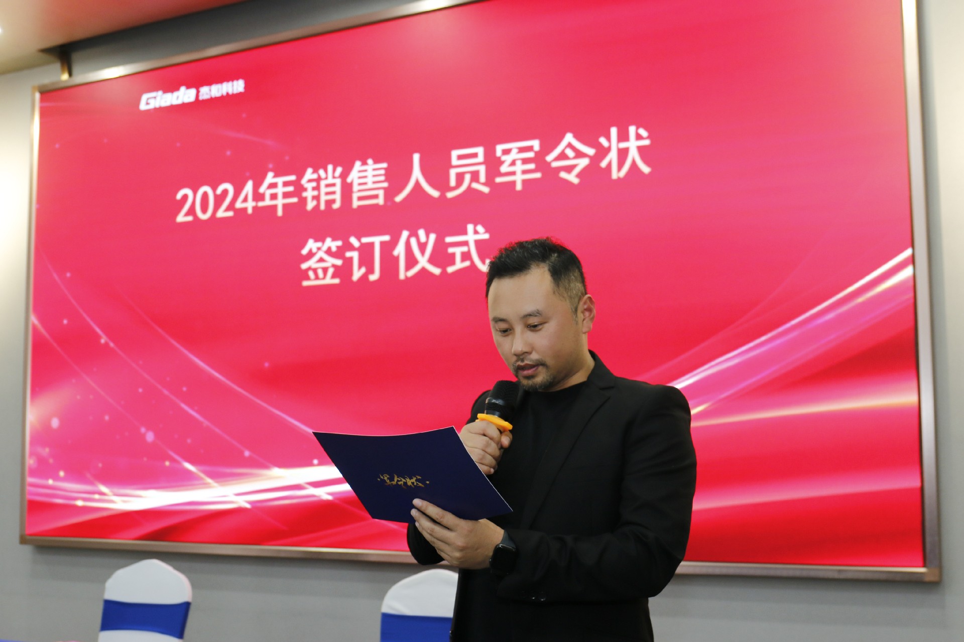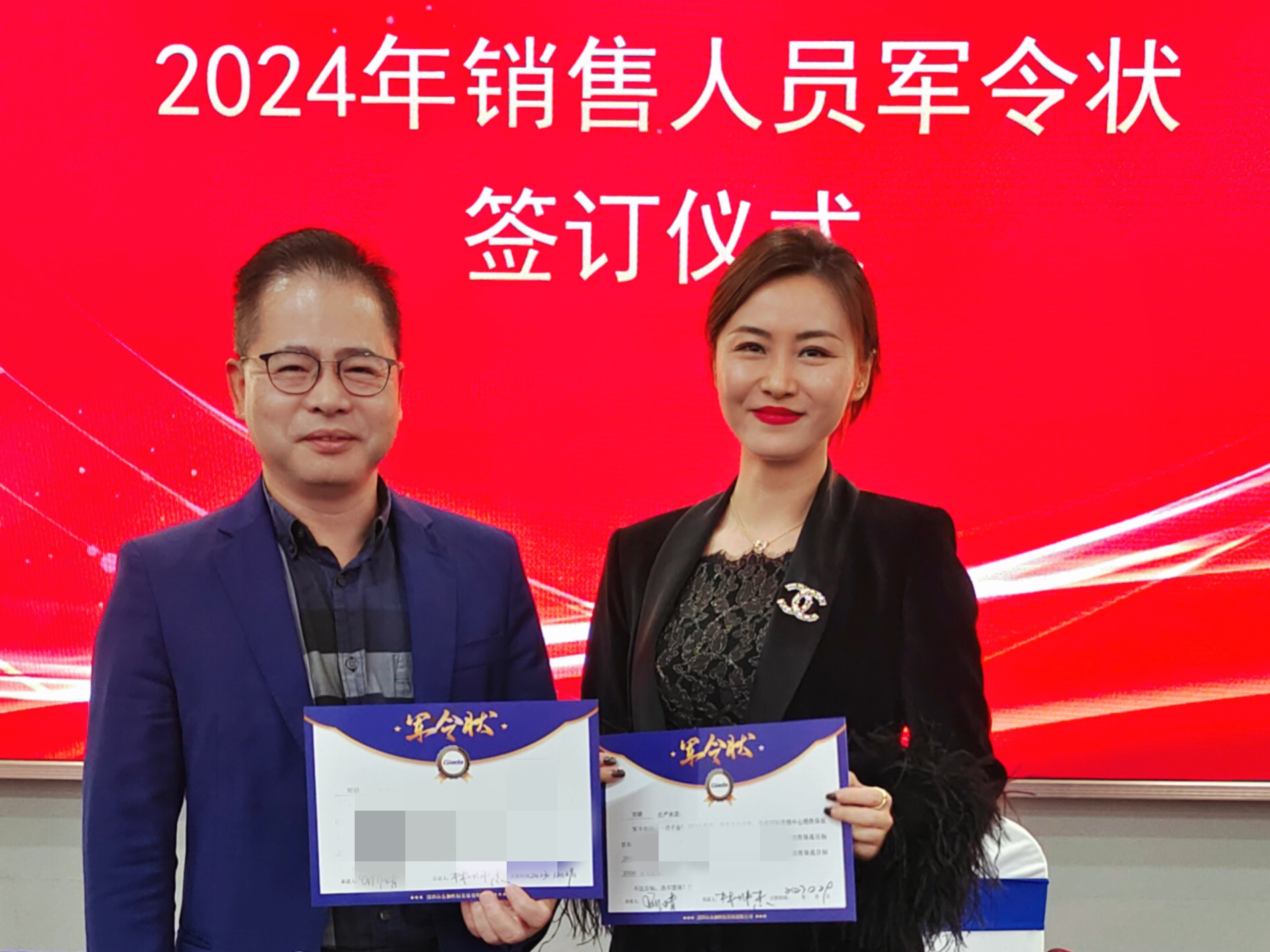 2024公司年度战略目标确立,言出必行,使命必达,国际/国内销售团队为了共同的目标开始军令状签约仪式。一纸军令状,是ca88科技与销售人员的双向承诺,是压力,更是动力。是不破楼兰终不还的决心,更是春风得意马蹄疾,一日看尽长安花的期待。