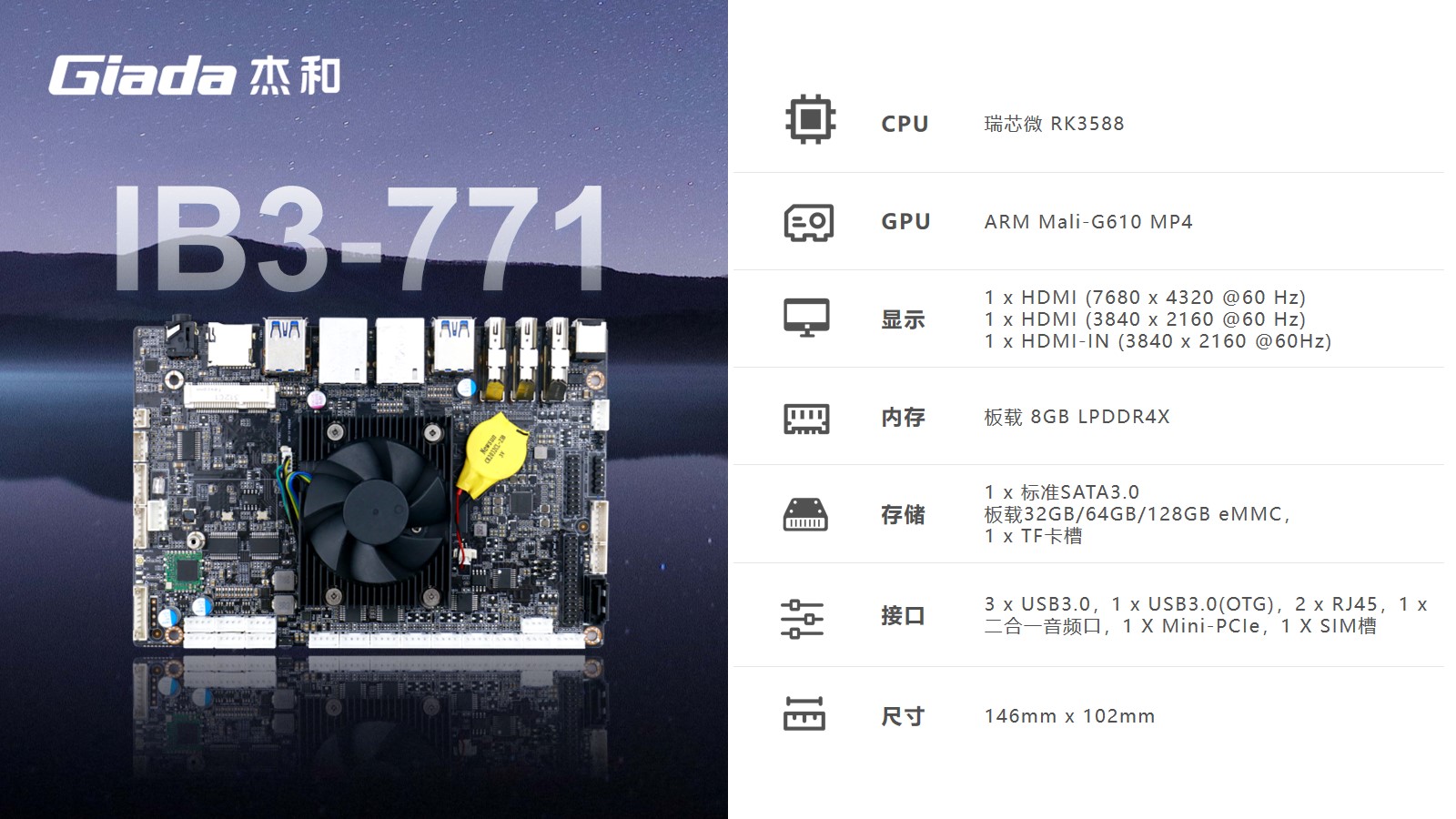 ca88科技嵌入式主板IB3-771是8K人工智能主板,拥有轻算力的它可用于机器人、边缘计算、智能NVR、智能汽车、智慧大屏、AR/VR、ARM PC、智能自助终端等领域,还可用于监控、工业、餐饮、智能交通、文娱产业等对超高清视频需求旺盛的行业;