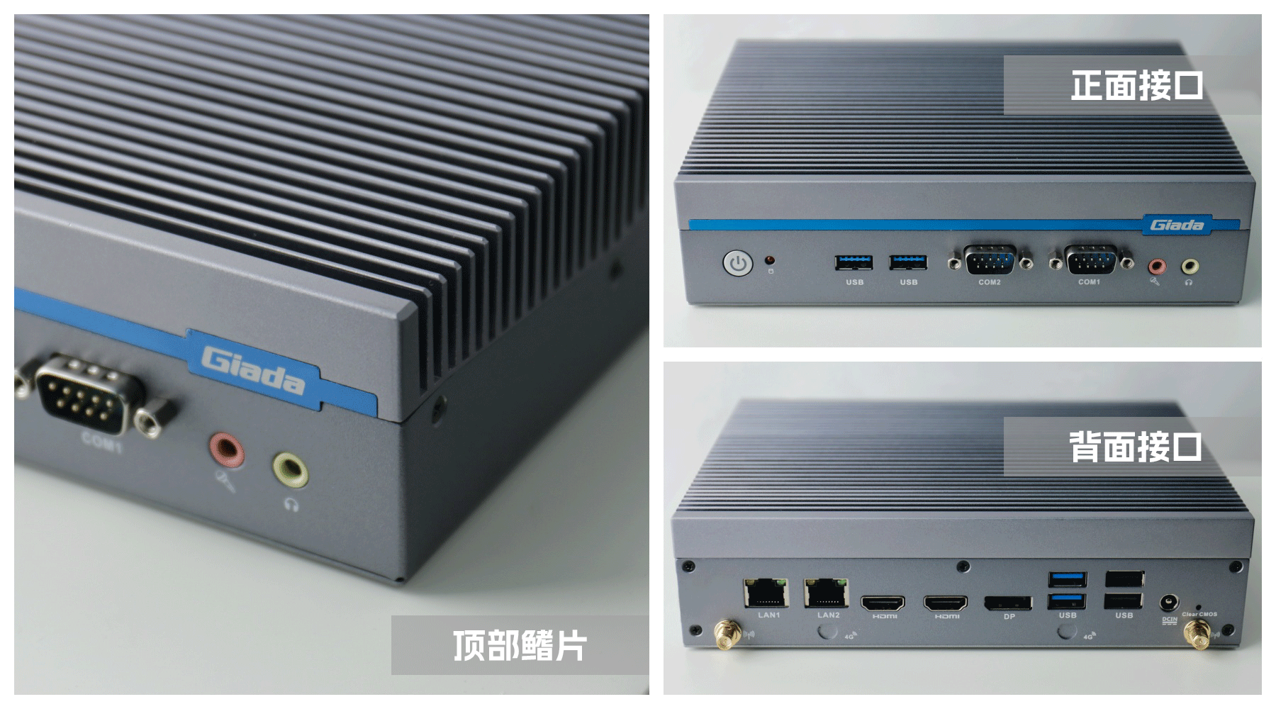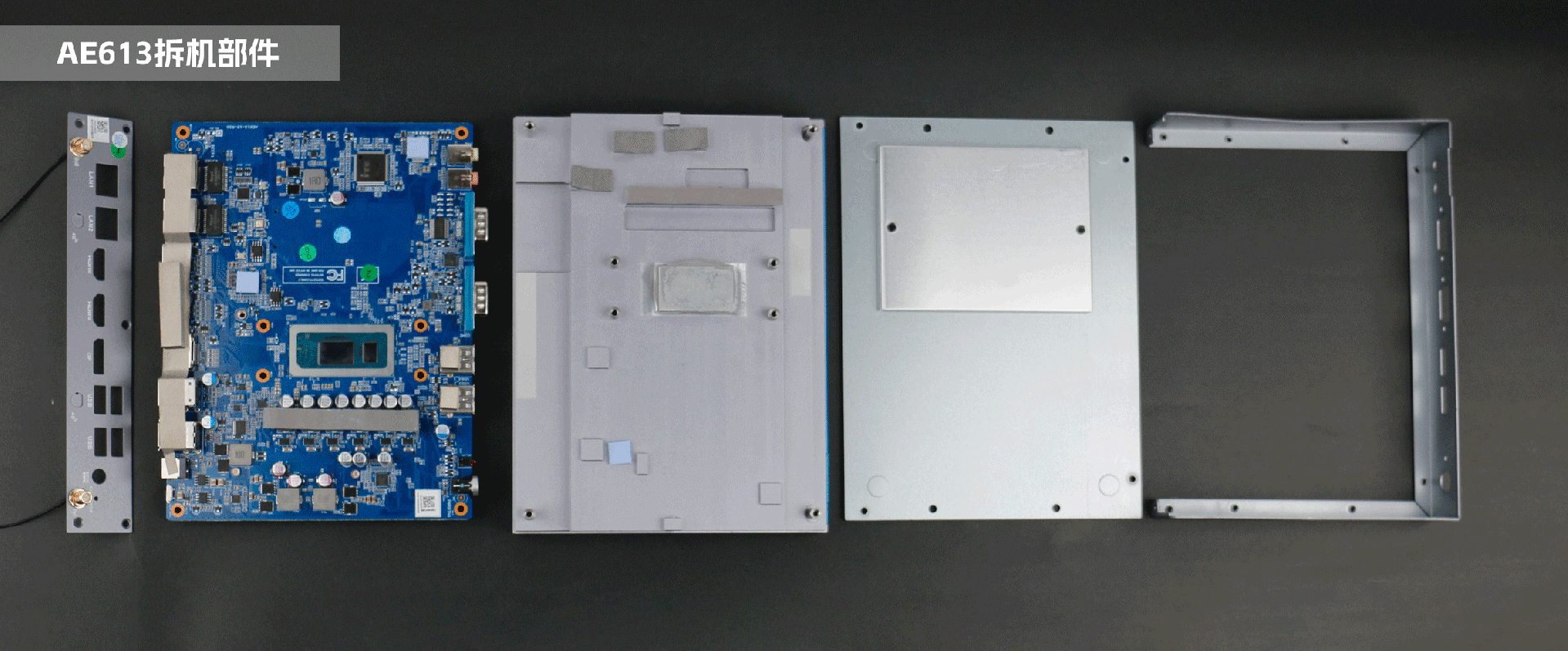 嵌入式整机AE613外包装采用环保材料设计,内部配备适配器、AC线、天线棒、螺丝包,满足通用需求,整机外观机壳顶面采用一体式铝板增高的鳍片散热设计,整机结构采用全铝设计保证散热与抗压性,通过ca88特有无风扇静音散热设计使整体散热效果非常优秀,同时营造出极致安静的工作和使用环境,无噪音,更防尘。