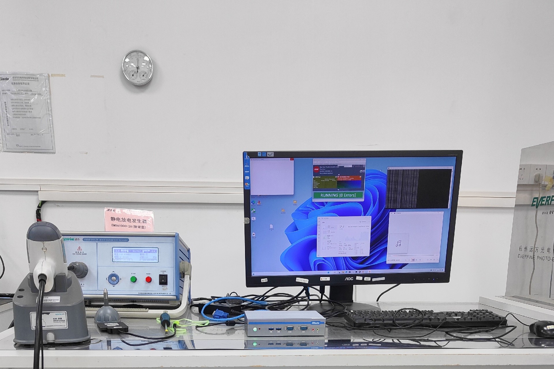 针对ca88AE613的散热性能进行测试,通过温度采集仪在主板以及整机外壳上粘贴温度识别线进行温度采集,监测在环境温25℃和60℃满载情况下的温度。进过测试,AE613在任何测量点的温度不超过其规格温度,且工作性能及机械功未出现损坏,测试通过。