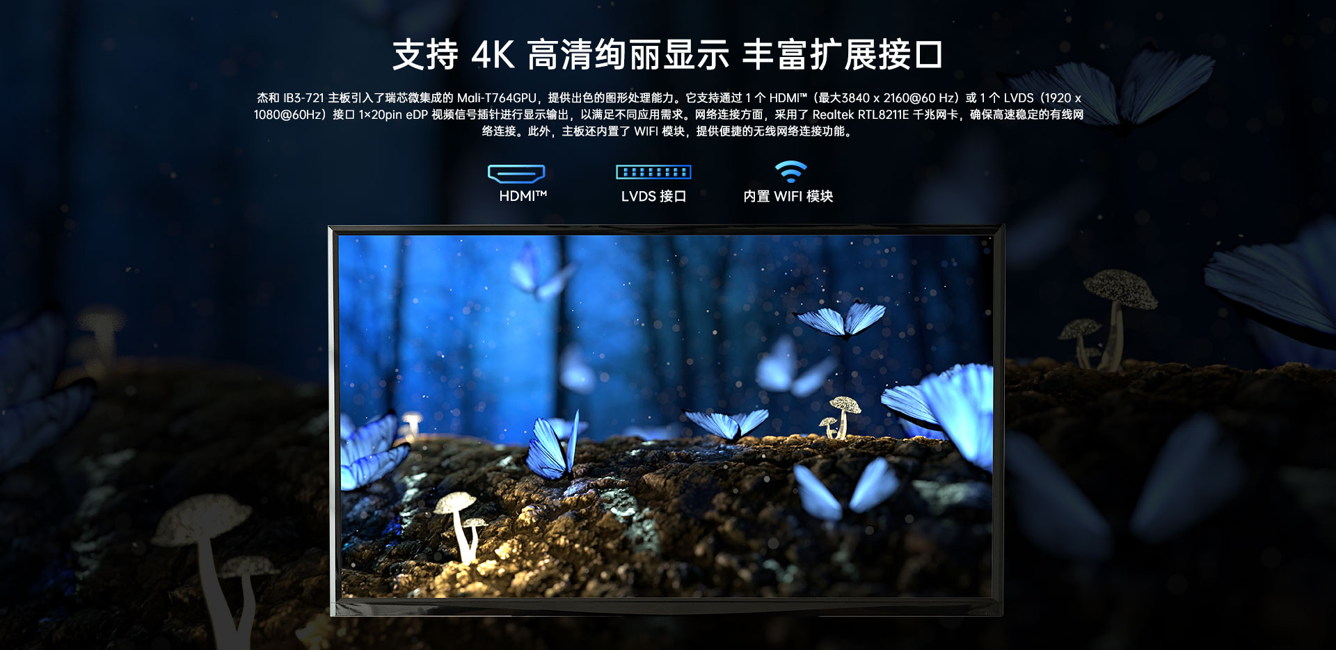 1xHDMI(Max. 4096x2160@60Hz),1xLVDS(Max. 1920x1080@60Hz)